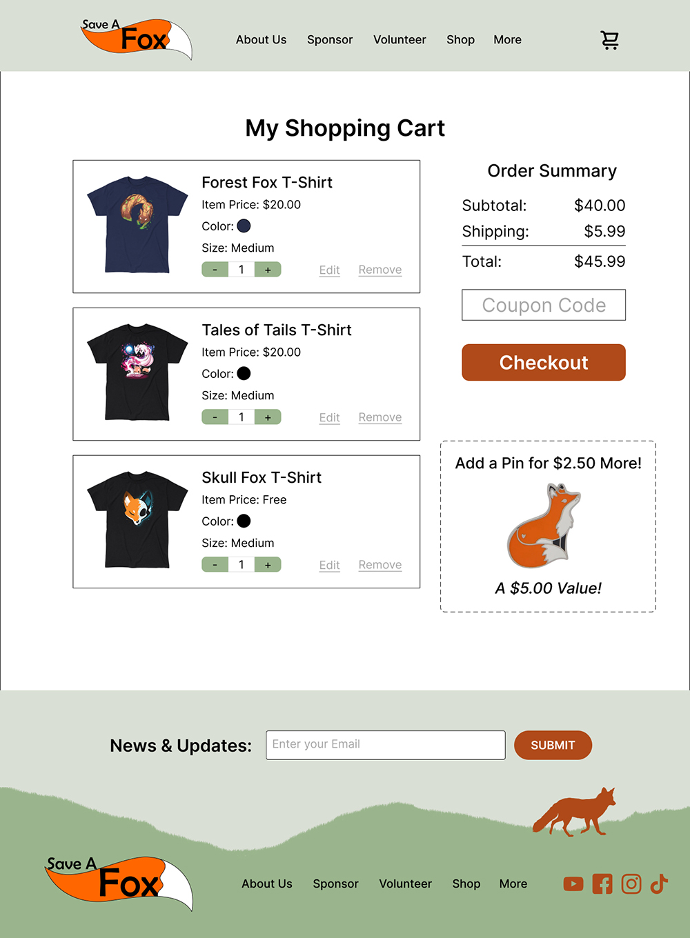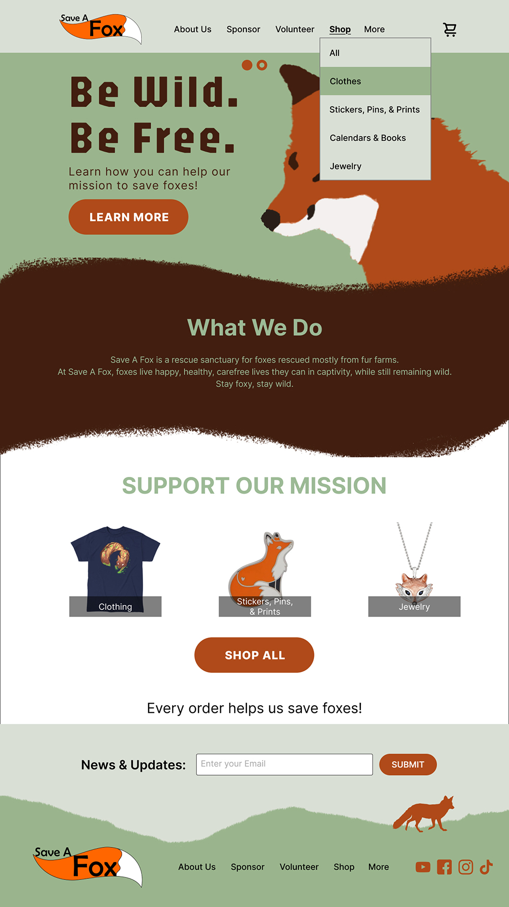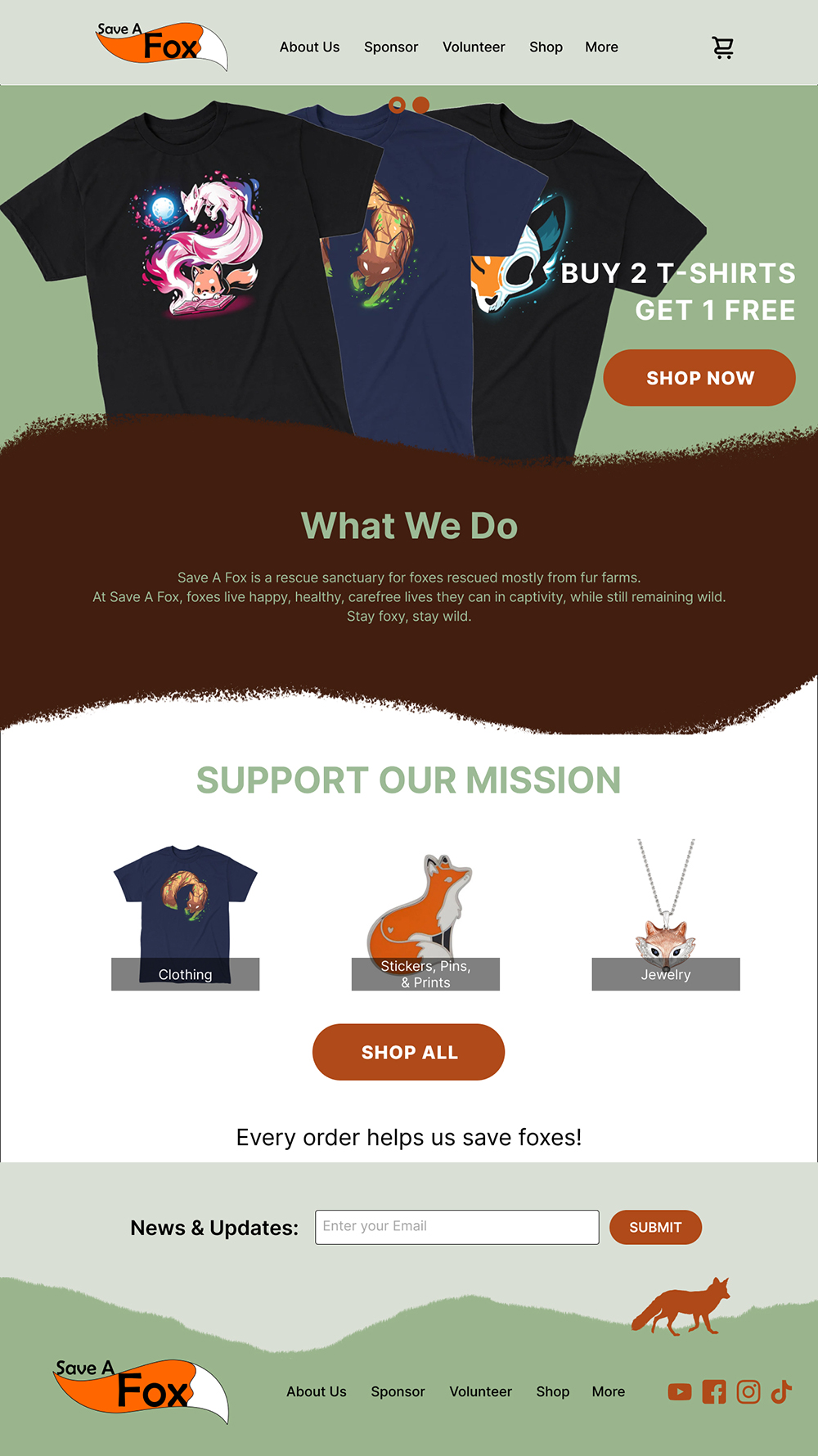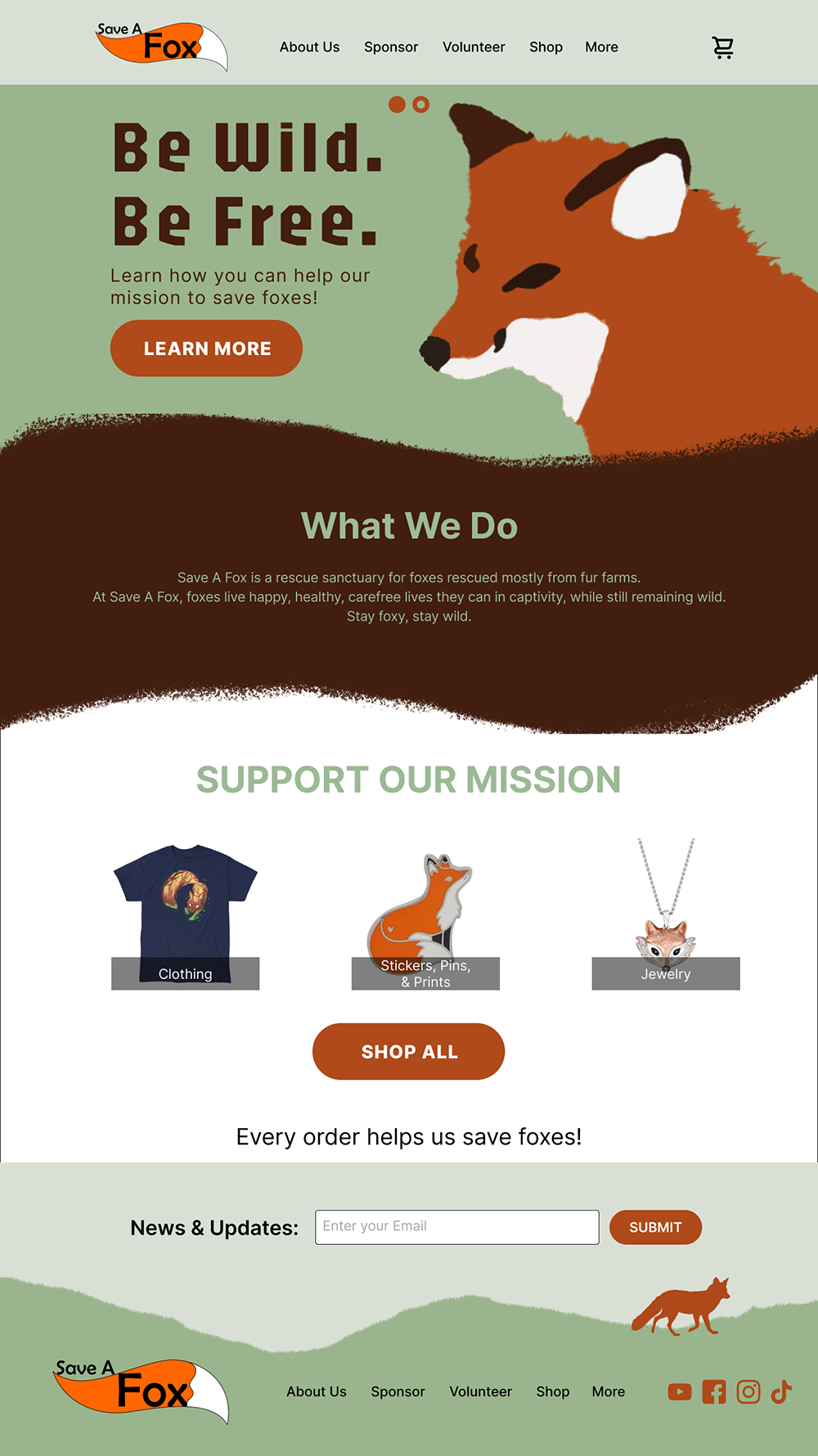 As an exercise, I tried my hand at rebranding a website. I chose a non-profit animal rescue/sancuatry Save A Fox, where they rescue foxes from fur farms and other situations. Their current website is decent, but I felt could be more lively and reflect the values of Save A Fox. I wouldn't code this website, but rather just design it in Figma.